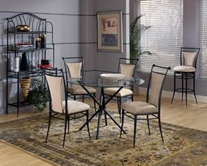Product Description : Color: FawnFinish:Black, Upholstery:Fawn Microfiber, Chair Quantity:4 Chairs The Cierra dining collection is both contemporary and colorful. Available in black metal with a choice of faux suede seat colors. The glass top table will enhance any color fabric combination you choose.Includes: Table: 44' Dia. x 33' H 4 chairs: 17' W x 16' D x 40' H (each)